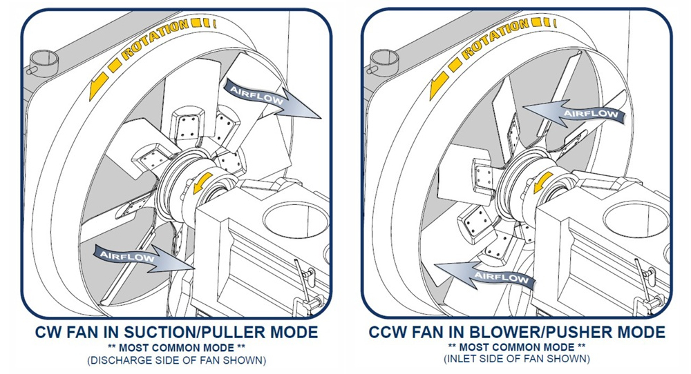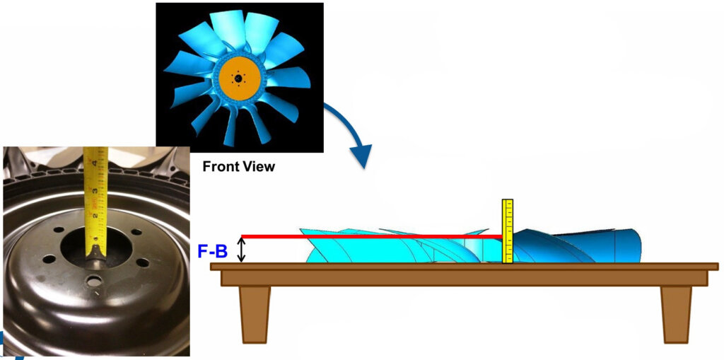 Place your fan engine side down on the floor/counter. Look at the blade that is in the 12 o’clock position. One side of the blade will be resting on the floor and one side will be raised.